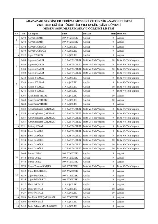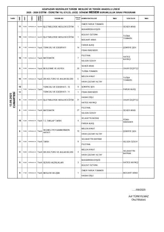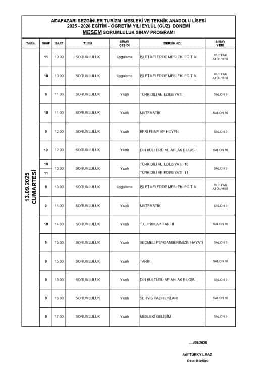 13.09.2025 Cumartesi günü MESEM Öğrencilerimiz sorumluluk sınavlarına gireceklerdir.